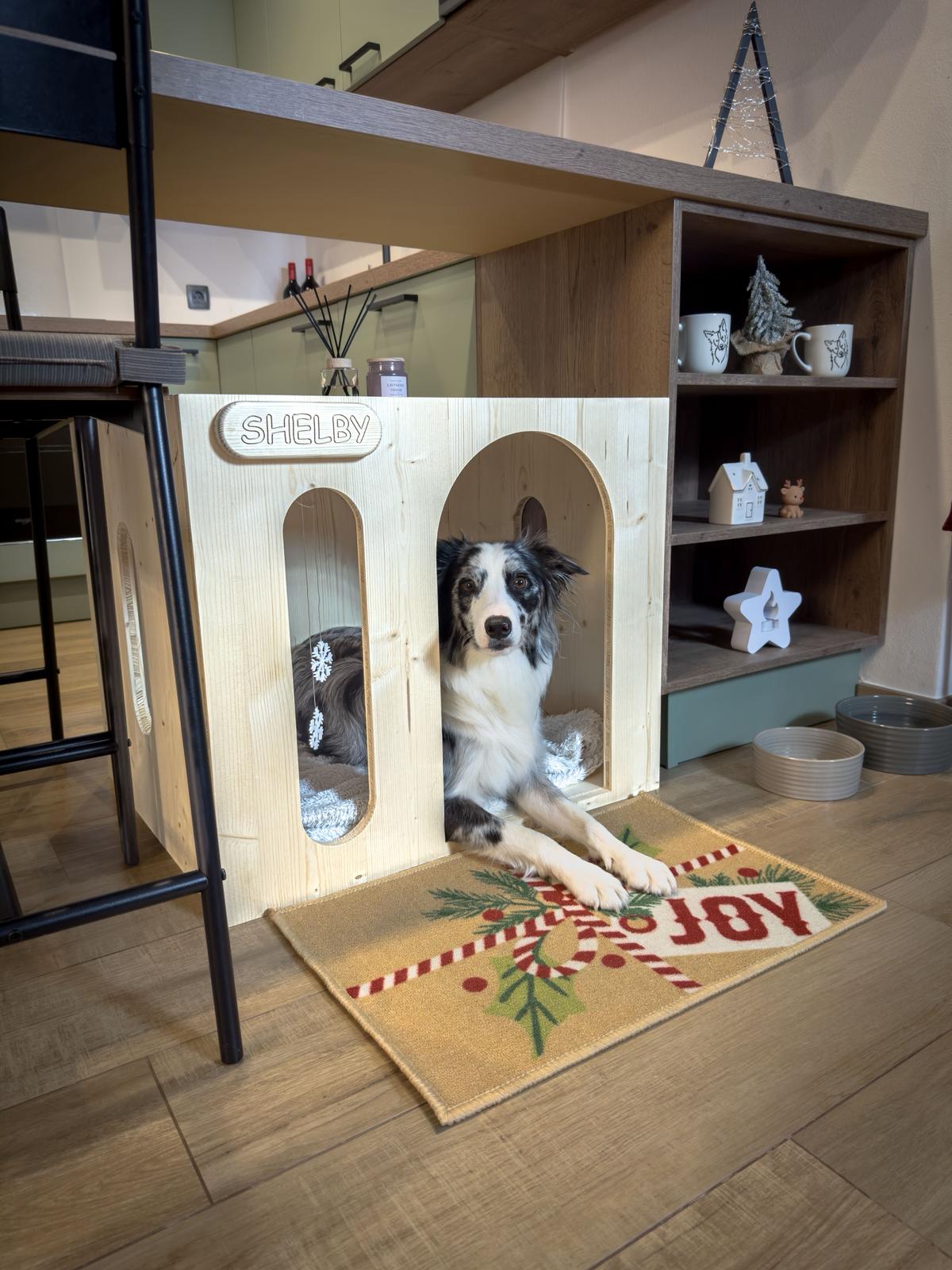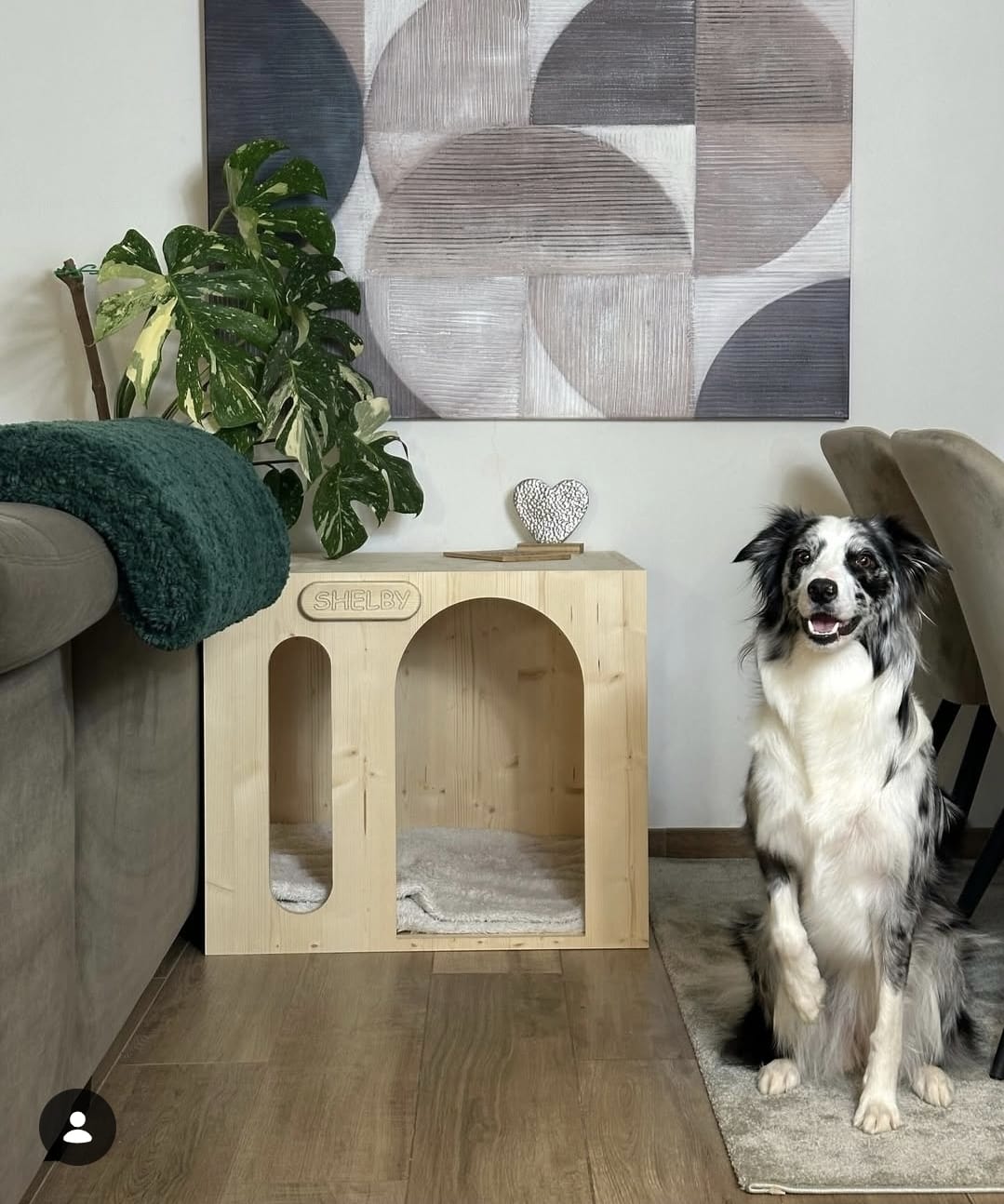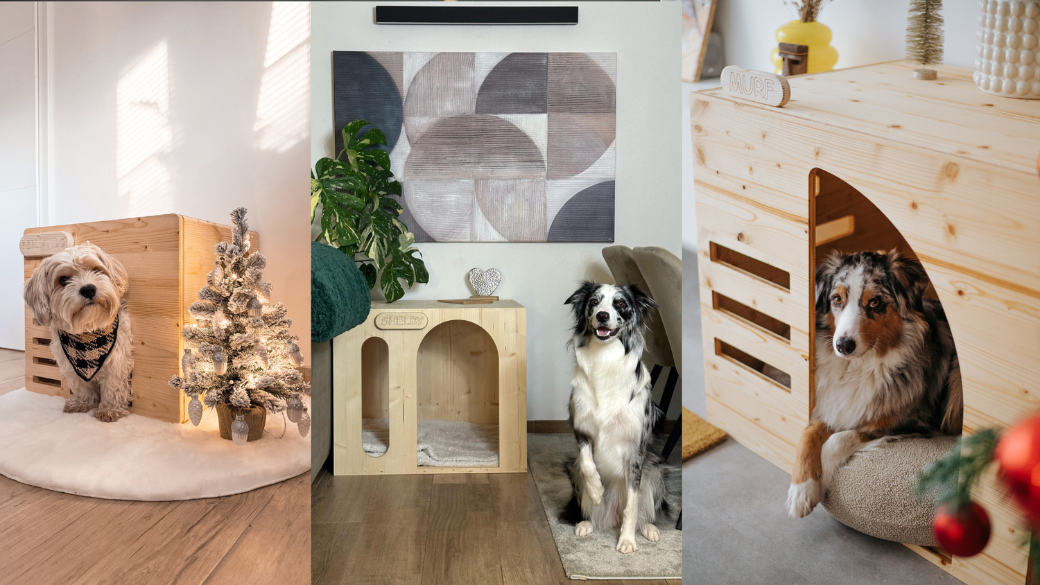 Dodatki narejeni iz naravnega smrekovega lesa, lepo dopolnjujejo kolekcijo pasjih hišk, ki jih tako delajo še bolj funkcionalne.