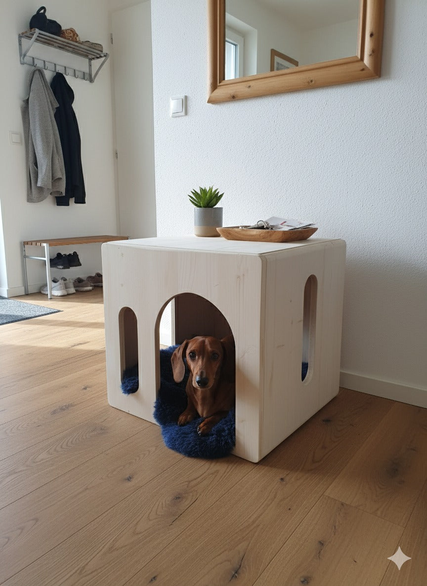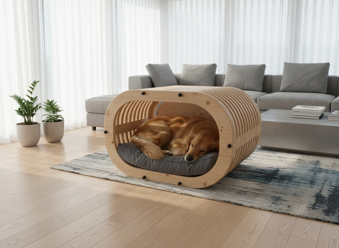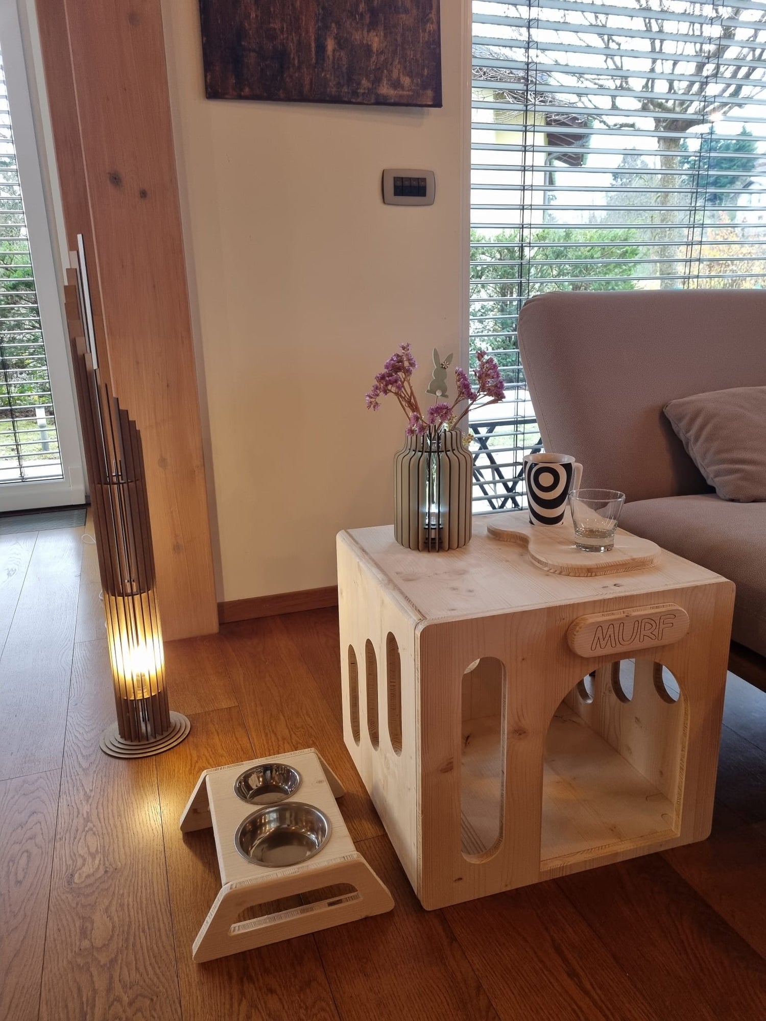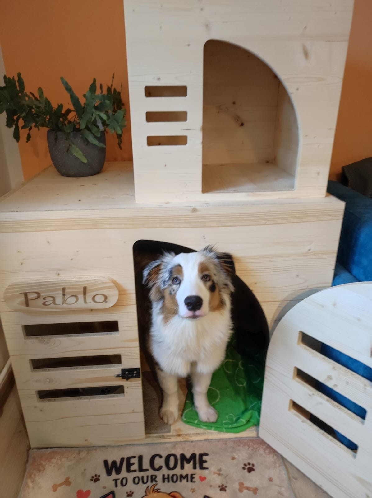 Dodatki narejeni iz naravnega smrekovega lesa, lepo dopolnjujejo kolekcijo pasjih hišk, ki jih tako delajo še bolj funkcionalne.