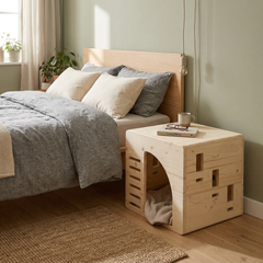 A multifunctional wooden house offers the comfort you want for your dog and the functionality you need. The pet house is more than just a corner to rest. The flat and reinforced top surface allows it to serve as functional furniture - as a table for placing books, coffee, vases, it can be a bedside table with a lamp and alarm clock or even a seat with a load capacity of up to 85 kg.